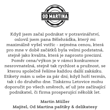 Jsme malá rodinná tiskárna z Letovic a zakládáme si na vstřícném přístupu k zákazníkům. Kromě veškeré standardní produkce malé tiskárny se specializujeme výrobu na etiket. Od návrhu konceptu a grafické podoby až po dodávku hotových etiket.